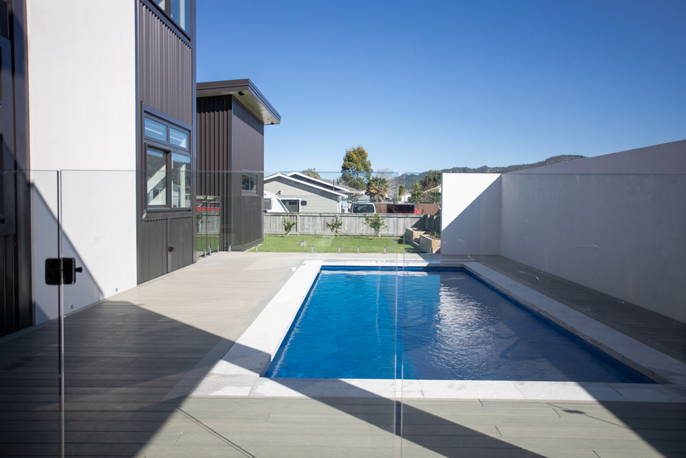 The high-spec Cook Drive beach home features entertainment-first design, automation, and eco-conscious planning. HAMR Home, with NZ Windows Whitianga, wrapped the outdoor areas in sleek Panorama frameless balustrades and GlasStrut pool fencing - creating a seamless fusion of form and function.